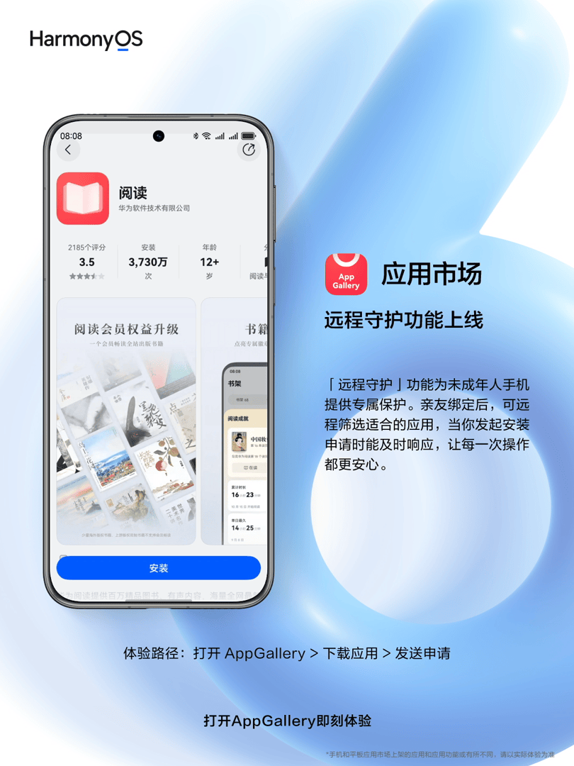 据介绍,该功能支持用户扫码绑定亲友设备。绑定后,可远程设置适龄应用范围,当被守护方发起应用安装请求时,守护方可实时接收通知,并快速处理下载权限。